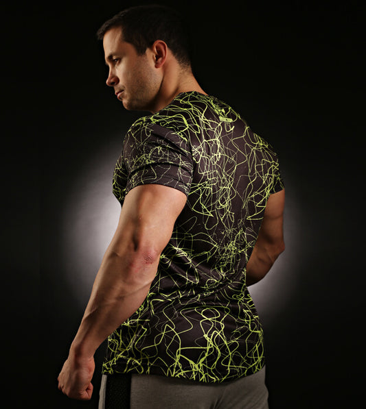 Recharge T-Shirt Green Electric- Product Description: recharge during every brutal set! A stringer that wicks sweat from the body during every rep and...