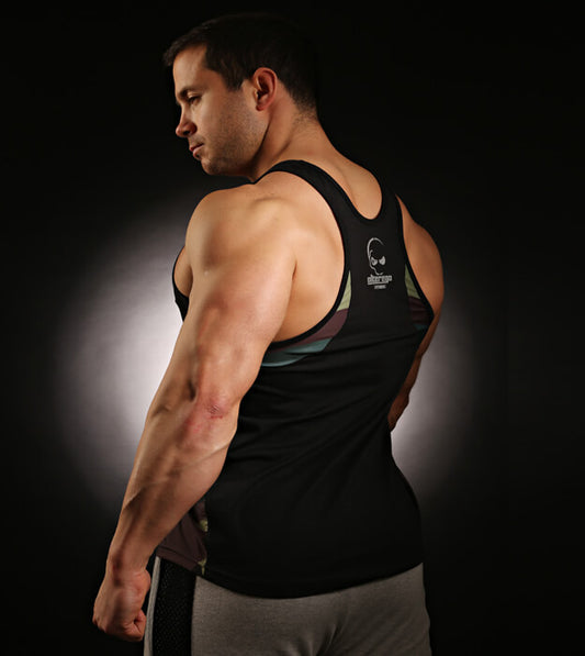 Recharge Stringer Black Electric- Product Description: recharge during every brutal set! A stringer that wicks sweat from the body during every rep and...